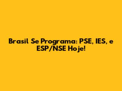 Brasil Se Programa: PSE, IES, E ESP/NSE Hoje!