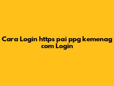 Cara Login Https Pai Ppg Kemenag Com Login