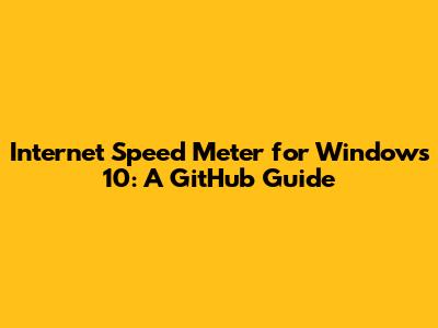 Internet Speed Meter For Windows 10: A GitHub Guide