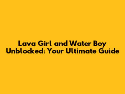 Lava Girl And Water Boy Unblocked: Your Ultimate Guide