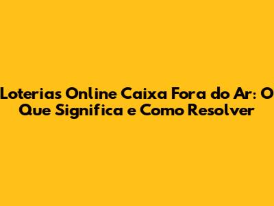 Loterias Online Caixa Fora Do Ar? Veja O Que Fazer!
