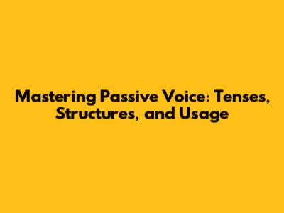 Mastering Passive Voice: Tenses, Structures, And Usage
