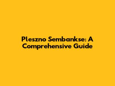 Pleszno Sembankse: A Comprehensive Guide