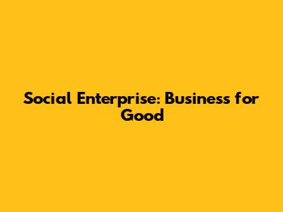 Social Enterprise: Business For Good