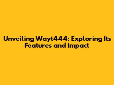 Unveiling Wayt444: Exploring Its Features And Impact