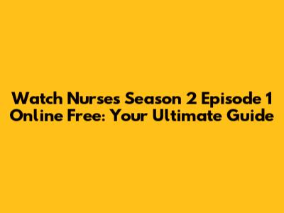 Hey everyone! So, you're looking to catch the latest episode of "Nurses"? Specifically, Season 2 Episode 1, and you want to watch it online for free? You've come to the right place, guys! We know how exciting it is when a new season drops, and the first episode is always a biggie. Whether you missed the initial broadcast or just want to rewatch that nail-biting cliffhanger, finding a reliable and legal way to stream it is key. In this guide, we'll dive into everything you need to know about watching "Nurses" Season 2 Episode 1, focusing on legitimate options so you can enjoy the show without any worries. We'll explore streaming platforms, potential free trial offers, and how to make sure you're getting the best viewing experience possible. Let's get started on finding that episode!